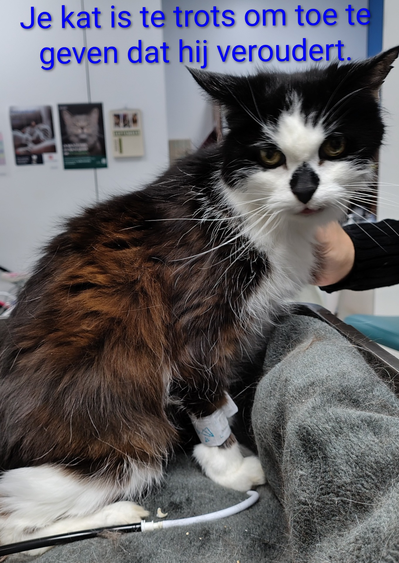 Net als bij mensen neemt ook bij dieren het risico op aandoeningen toe met de leeftijd. Jammer genoeg merken heel wat eigenaars lange tijd niets van deze typische latere ziekten. Katten (en honden) zijn namelijk ware meesters in het verborgen houden van hun symptomen. Als je merkt dat je dier ziek is, is de kans groot dat het probleem al lang aanwezig is. Door je huisdier jaarlijks te laten onderzoeken, is het mogelijk bepaalde ziekten in een vroeg stadium te identificeren … en er wat aan te doen!
